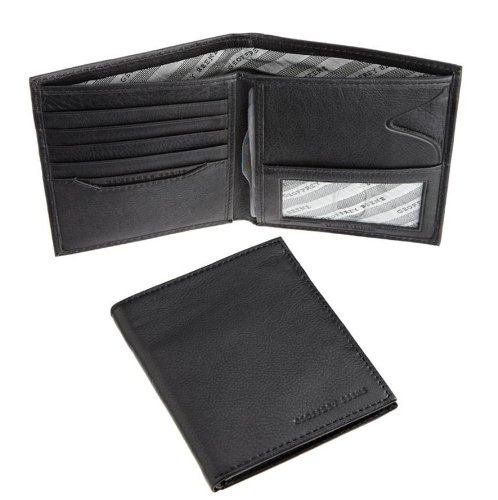 The love for Geoffrey Beene wallets spans generations. These timeless wallets offer functional design, top quality materials and classic appeal. The Hipster Style Double Billfold Wallet is a truly functional design. Created from genuine leather - wallet measures 4 inches by 4.75 inches. Wallet features full size double billfold compartment for currency. Divided currency compartment is great for multiple types of currency, receipts and travelers checks. Interior features a clear ID window with thumb hole for easy removal of ID. Located just above ID window is a card slot (able to hold multiple cards) with "built in" thumb slit for easy removal of your most used (membership, ID, discount) cards. Behind these slots is a slip pocket featuring a removable credit card window insert able to store additional credit or business cards for easy access. An additional slip pocket located within wallet is perfect for storing notes / receipts. Interior also features 5 more card slots (each able to hold multiple cards) with a removable clear protective credit card flap. A wallet perfect for the Business Man / Traveler this Hipster Style Double Billfold Wallet is available in black only. Bi-Fold Wallet ships in signature Geoffrey Beene tin gift box.